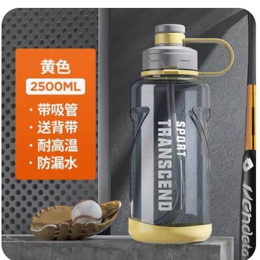Generic Sport Glass Water Bottle with Straw, Leak-Proof, Silicone Handle, Detachable Strap, 2L Capacity, Clear, Airtight Design for Travel, Outdoor Activities .SG