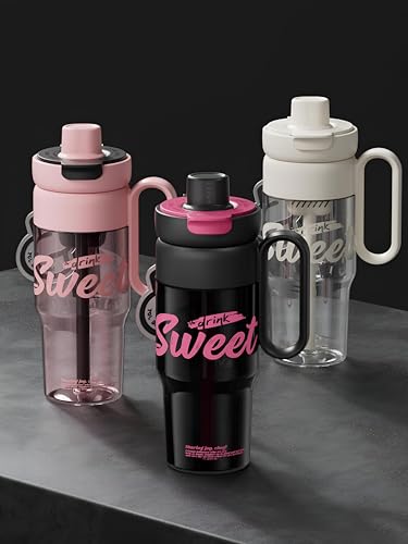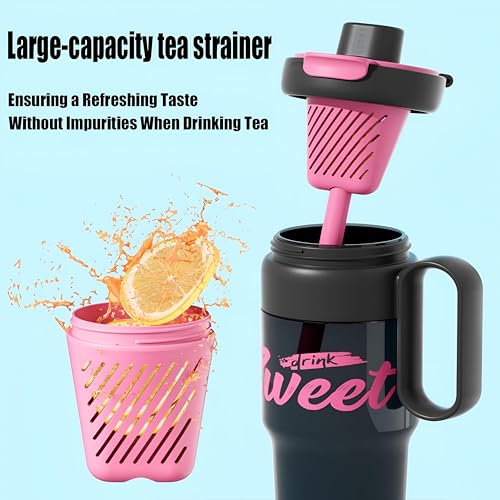 كوب بغطاء مقوى من مادة البيسفينول أ سعة 840 مل مزود بمقبض، زجاجة مياه بلاستيكية مانعة للتسرب، تصميم مقاوم للانسكاب مع قمع الشاي للشرب المريح في أي مكان