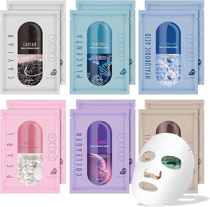 MASK Skin Collection Facial Sheet Masks - Unscented Caviar Essence Spa Masks Packed w/Omega-3s - Nourish, Revitalize & Hydrate Your - Suitable for All Type-COLLEAGEN