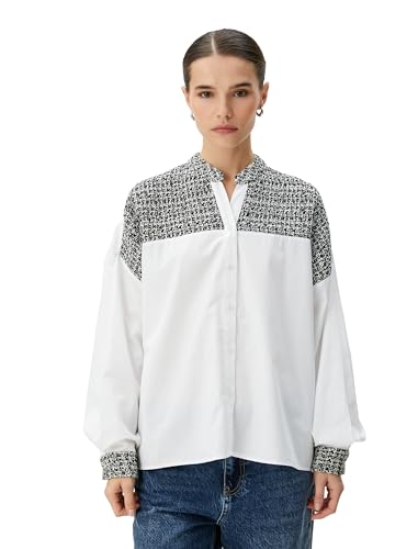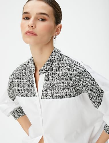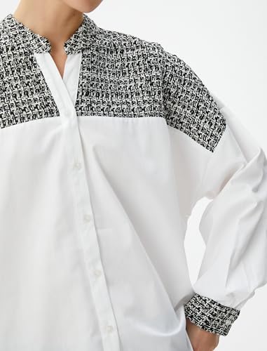 قميص كلاسيكي بأكمام طويلة وياقة ماندارن من التويد بأزرار للنساء كوتون عبوة قطعة واحدة