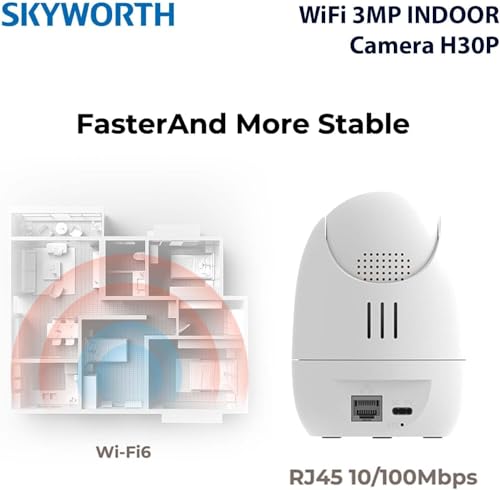 SKY-WORTH H30P 3MP Indoor Security Camera with WiFi 6 Color Night Vision 360° Rotation with Microphone and Speaker