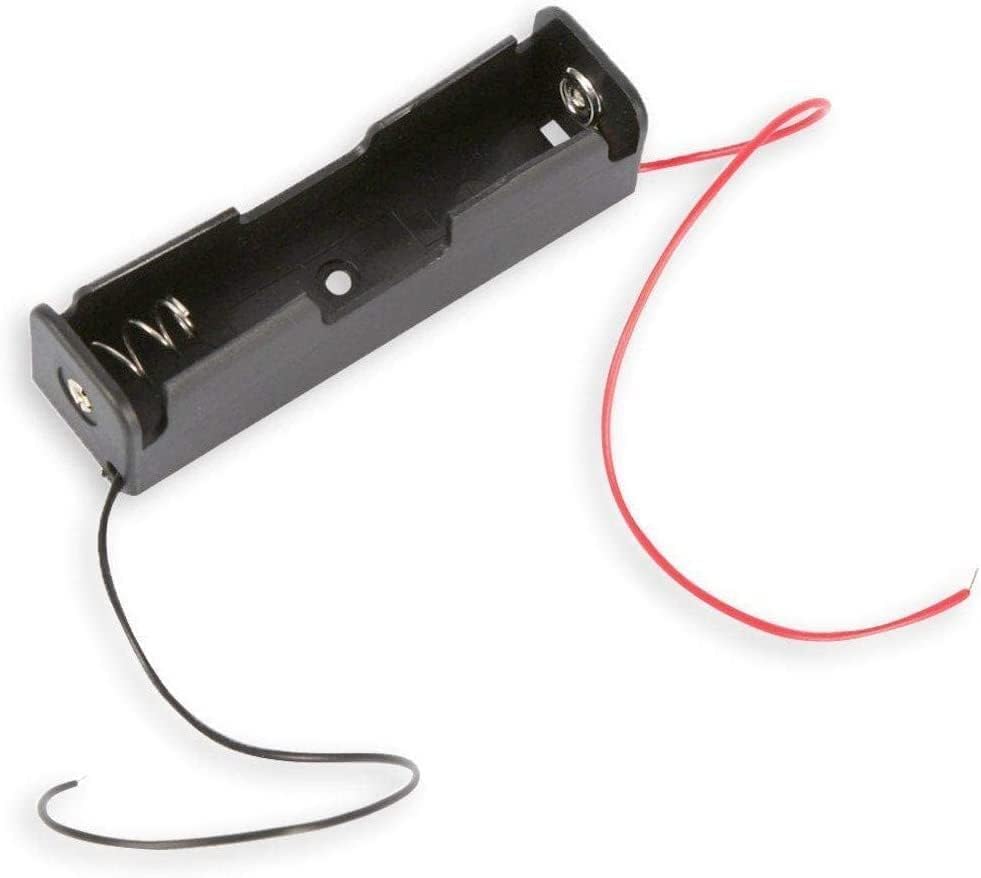 18650 Battery Holder Case with Wire Leads,1 Slot, 3.7V Power Supply, DIY Battery Storage Box for Arduino, Projects, and Electronics,Durable Plastic -Black