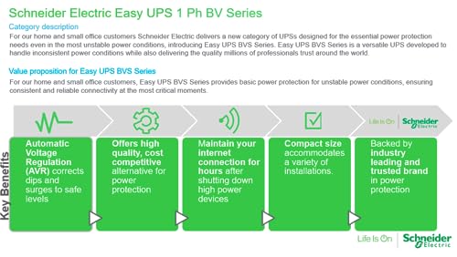 وحدة تزويد الطاقة اللامنقطعة من شنايدر الكتريك، جهاز تنظيم الكهرباء بي في اس 1000 فولت امبير، مخرج شوكو، BVS1000I-GR