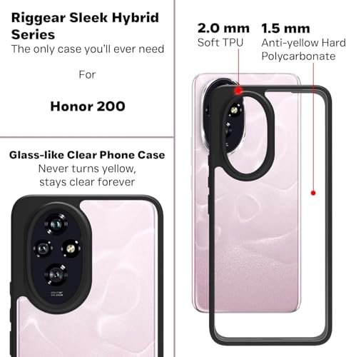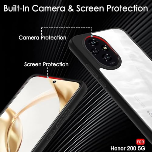 جراب حماية خلفي صلب مقاوم للصدمات مصنوع من البولي كربونات مع إطار من البولي يوريثين الحراري الناعم مضاد للاصفرار متوافق مع موبايل هونر 200 (شفاف)