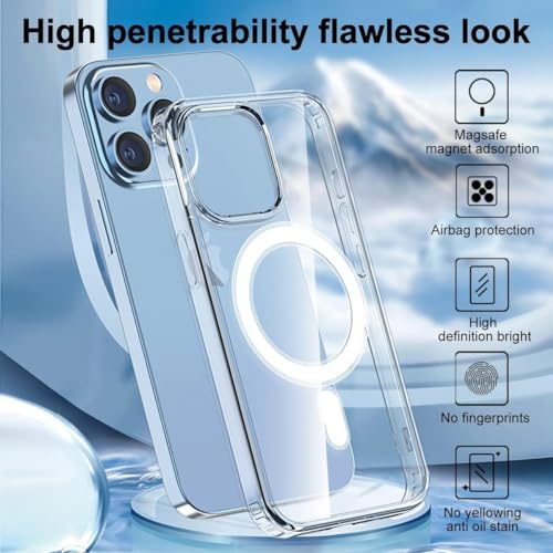 Case For iPhone 16 Clear Magnetic Cover MagSafe Compatible - Hybrid Protective Crystal Clear Hard Back Case - Shockproof Silicone Frame - Slim Transparent Case for Apple iPhone 16