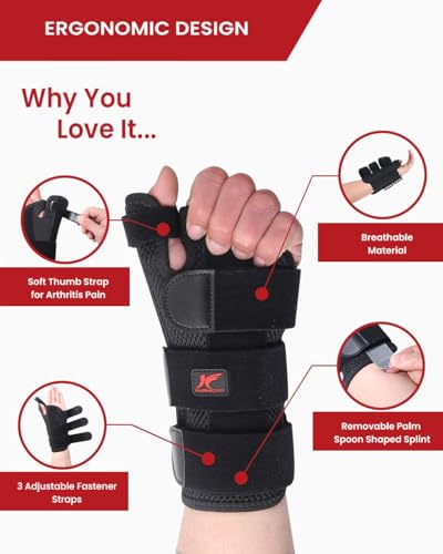 - 1 جبيرة معصم مصممة على شكل راحة اليد: تتميز دعامة النفق الرسغي بدعامة معصم مبتكرة مصنوعة من خليط الألومنيوم على شكل رائحة اليد، مما يوفر دعمًا ثابتًا لتثبيت مفصل المعصم بكفاءة. تخفيف سريع لآلام وانزعاج المعصم. توفر هذه الدعامة القابلة للتعديل الحماية والاستقرار اللازمين لمعصمك أو إبهامك في حالات الالتواء أو الكسر. صممت بجبائر قابلة للتعديل لتوفير الثبات لكل من معصمك ومفصل قاعدة الإبهام الرسغي السنعي في نفس الوقت. تعتبر هذه الدعامة خيارًا ممتازًا لعلاج حالات مثل كسور العظم الزورقي في الرسغ، والإبهام المقفل، والتهاب غمد الأوتار، ومتلازمة النفق الرسغي، بالإضافة إلى التواءات الرسغ.