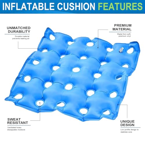 - 【High-quality PVC Material】The inflatable seat cushion is made of high quality PVC which makes it easy to clean, waterproof and durable. Breathable and comfortable in summer, it is not easy to sweat, and it is not easy to harden in winter.