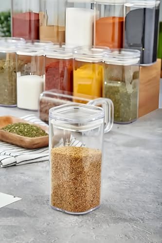 - صُنعت هذه البرطمانات من الأكريليك عالي الجودة، وهي ليست متينة فحسب، بل إنها خفيفة الوزن أيضًا، مما يجعلها مثالية للاستخدام اليومي. يتيح لك التصميم الشفاف رؤية المحتويات في لمحة، مما يضمن عدم نفاد التوابل المفضلة لديك أبدًا عندما تكون في أمس الحاجة إليها.