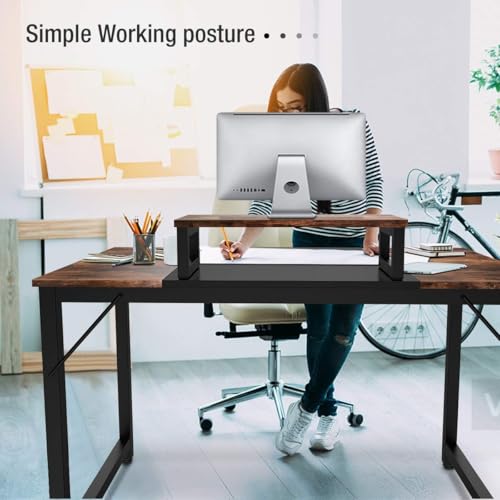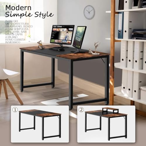 مكتب كمبيوتر على شكل حرف I مع حامل شاشة قابل للإزالة، مقاس 70 سم، أسود/بني من فورنيفليكس