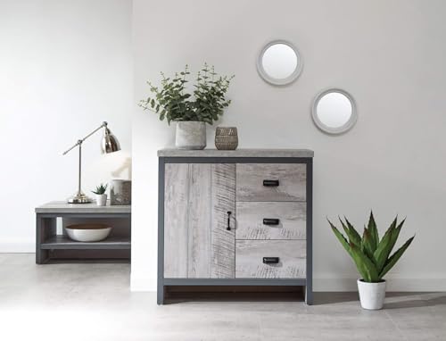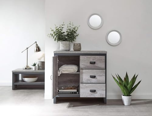 وحدة تخزين جانبية خشبية عصرية مكونة من 3 أدراج وباب واحد من فورني فليكس، رمادي