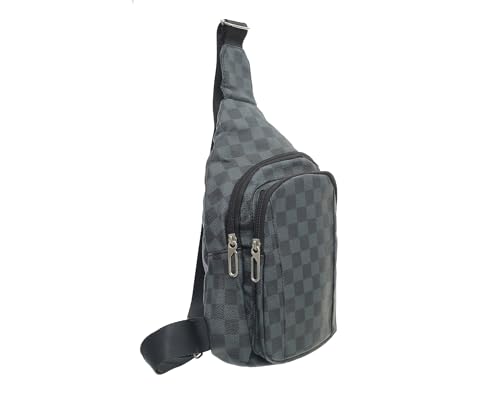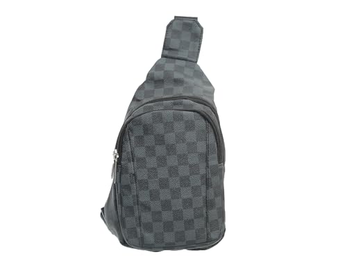 Faux Leather Medium Chest Bag Contains Two Zipper Pockets With Squares Print Design And Strong Strap Practical For Adults - Grey