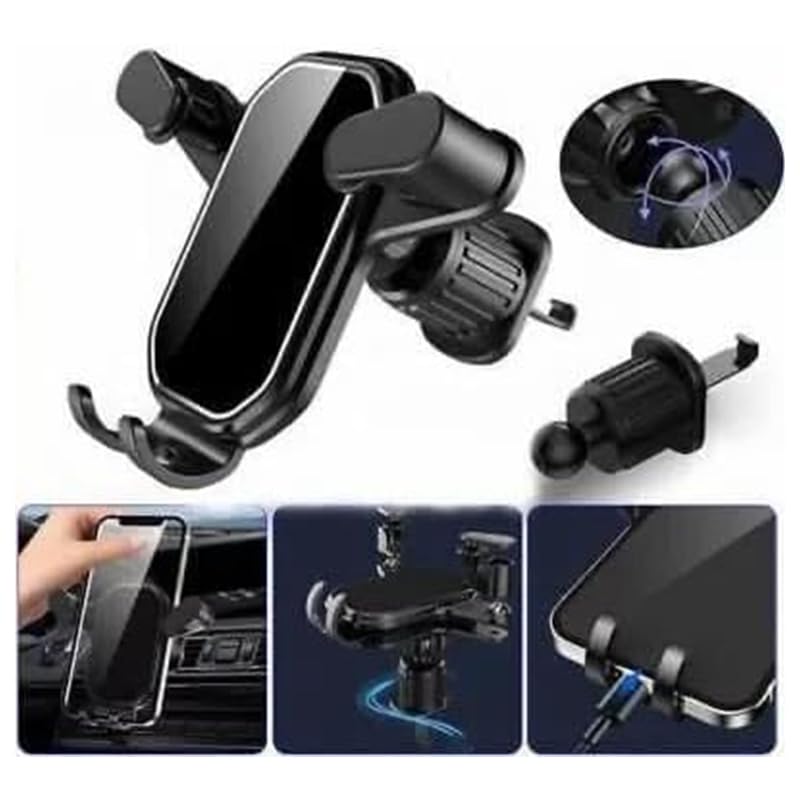 Car Air Vent Phone Holder, Strong Lock Clip Phone Holder (Black, Code:7552) - KaberTrade