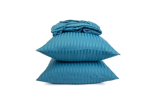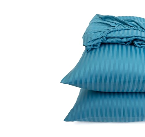 Striped Fitted Sheet Set - Fine Quality Hotels and Home Décor - 1 Fitted Sheet 180cm * 200cm + 2 Pillow Cases 50cm * 70cm - Matresses Up to 30cm - Brushed Cotton - Teal