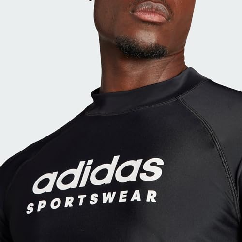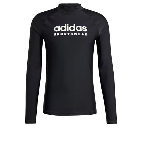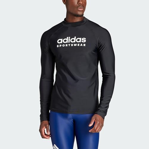 بدلة سباحة راشجارد لون أسود بأكمام طويلة للرجال من اديداس، نايلون