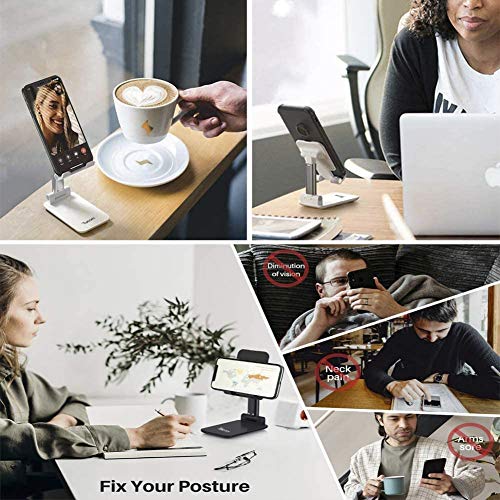 - 【Adjustable Viewing Angle & Height Make Life Easier】 The TyCom phone desk stand supports the mobile phone to adjust multiple angles to meet your different viewing needs. Better view the recipes while cooking. It's also great for on your nightstand, so no more fumbling around in the morning to shut off the alarm. You can see at a glance incoming notifications and calls when the phone is in silent mode.