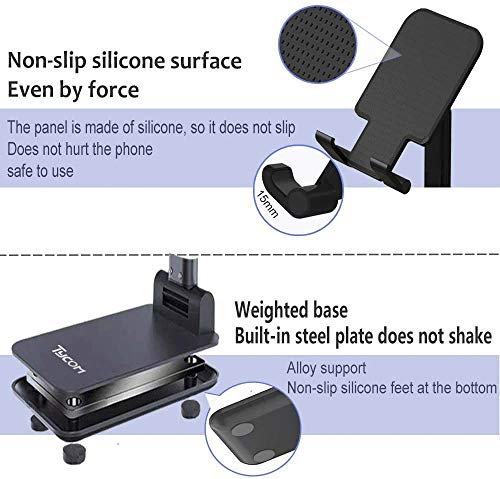 TyCom Cell Phone Stand, Adjustable phone holder for Desk, Foldable Desktop Tablet Stand Holder, Double Adjustable Mobile stand Phone Tablet Holder (Black)