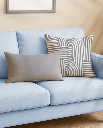 Arched Lines and Solid Pattern Cushion with Geometric Throw Pillows 2-Piece Set, Grey/Taupe