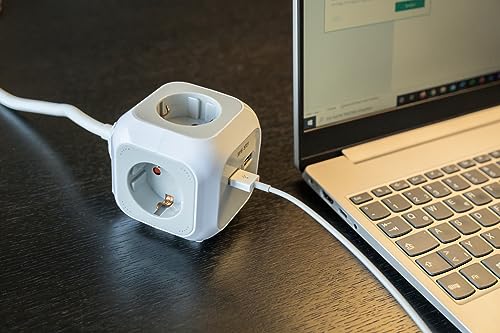 Brennenstuhl Power Strip – 4 outlets, 1.4 meters, cube design, with 2 USB ports – Model: 115010 (Chinese)