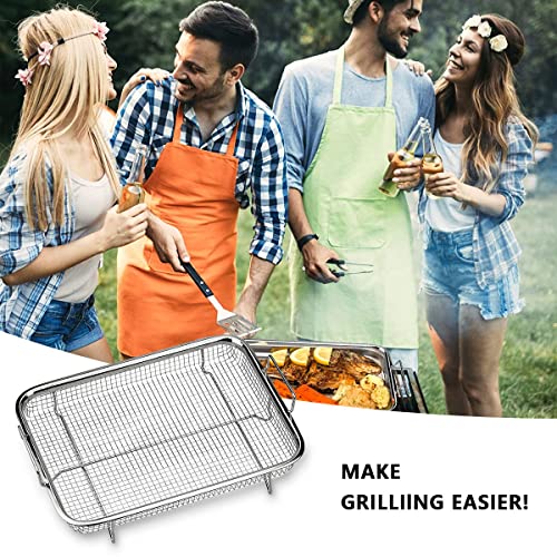 TAIZER Grill Basket Barbecue Tray Oven Mesh Tray Stainless Steel Barbecue Basket Grid Net Bowl Picnic for Barbecue Fries Vegetables Oven Fried Cool