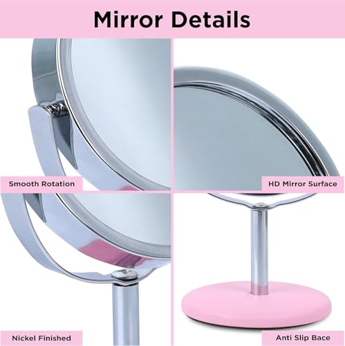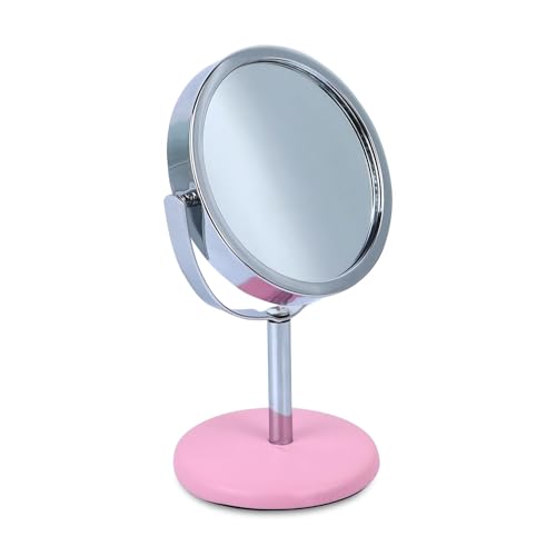 مراية مكياج دائرية الشكل مكبرة قائمة بذاتها متعددة الأغراض مع حامل، لسطح الطاولة ومستحضرات التجميل وللحلاقة وللحمام - متعددة الألوان
