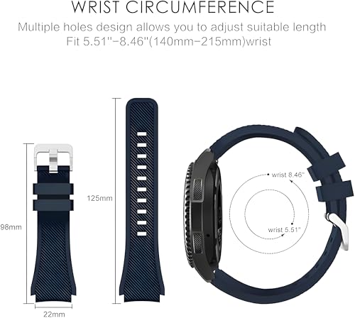 سوار رياضي من السيليكون متوافق مع ساعة جالاكسي 22 ملم 46 ملم/ جير S3 فرونتير/ كلاسيك/ سامسونج جالاكسي 3 45 ملم، متوافق مع ساعة هواوي GT2/GT3/موتو 360 الجيل الثاني من نكست ستور
